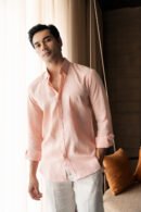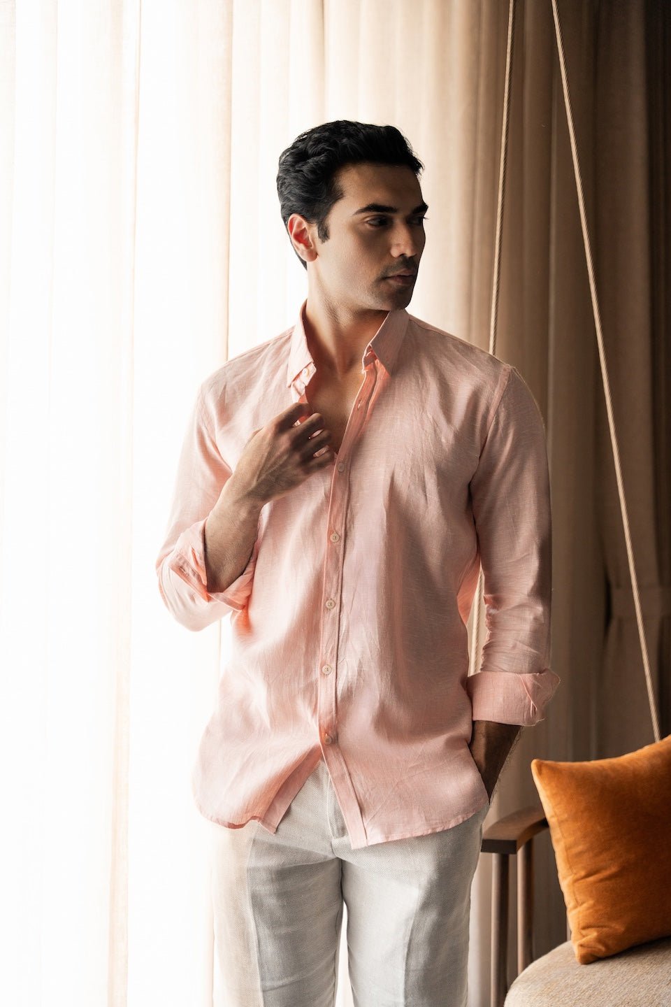 The long-sleeve Frosty Peach shirt is designed from a lightweight, breathable linen fabric, enzyme washed for extra softness, making it ideal for any semi-formal or casual setting.