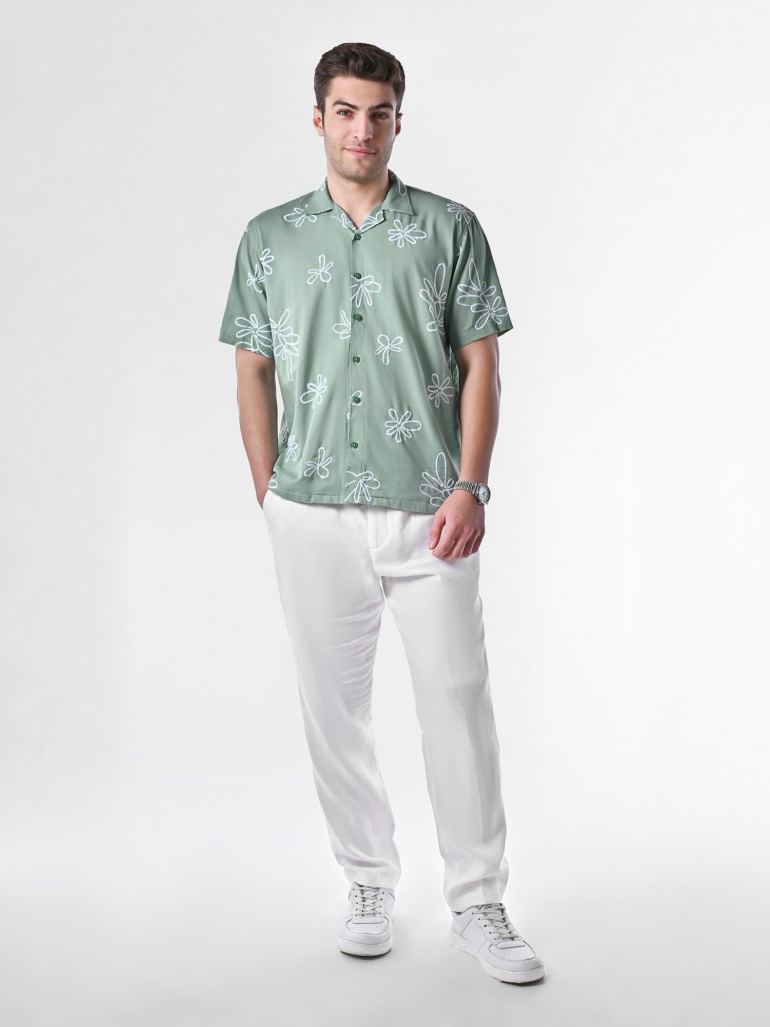 A perfect blend of effortless style and breathable comfort, the Box-Fit Floral Bloom Linen Shirt is crafted from a premium cotton-linen blend with a relaxed boxy fit. Designed for those who appreciate intricate details, this shirt features all-over floral embroidery, adding a refined yet laid-back touch to your wardrobe. The Cuban collar enhances its vintage charm, making it ideal for sun-soaked escapes and casual gatherings.